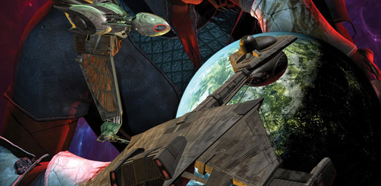 For me, a highlight of the book was a spectacular action sequence, about half-way through the novel, as the Unsung attack Riker’s interstellar peace conference on the Klingon planet H’atoria. Mr. Miller sets up the scene beautifully, describing a wonderfully unique location: the lava-surrounded island the Klingons calls “Spirit’s Forge.” Mr. Miller cuts rapidly between multiple locations and multiple characters, allowing us to follow every step of the complex engagement as it unfolds. This is riveting, page-turning writing, as exciting as the best action sequence in any filmed Trek adventure.