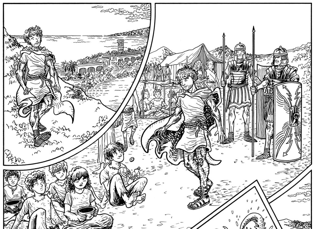 SIGNAL FIRES is my latest collaboration with the author Arnon Shorr. It is the fourth Tale in the “Festival of Forgotten Tales” series of comic books, that blend fun genre stories with Jewish holiday lore. Each of these “Festival of Forgotten Tales” comics tells a completely stand-alone adventure (though you might notice some thematic threads running through them all.)