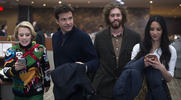 Jason Bateman could play a role like this in his sleep: the nice, decent guy surrounded by a bunch of loony-tunes. The role might be familiar, but Mr. Bateman is so good at this character-type that it’s hard to complain. Watching him in this role is like watching an old master at work. Mr. Bateman is one of the finest comedic straight-men to ever grace the screen. T.J. Miller’s star has been rising for the past several years (He was solid in 2008’s Cloverfield, his first film, and he’s great on Silicon Valley, which I just started watching), and it’s nice to see him in this big-time leading role. He’s fantastic as Clay, showing us Clay’s goofball man-boy energy but also his earnest desire to be a good boss who can live up to the idealized image he has of his father, who used to run the company. I love Mr. Miller’s relationship with Mr. Bateman; you really buy these two as friends. I also loved Mr. Miller’s relationship with Jennifer Aniston as Clay’s sister Carol. Ms. Aniston has a very different comedic energy, and yet the two fit together incredibly well. Mr. Miller holds his own in his scenes with superstar celebrity Ms. Aniston, and it’s fun watching them wrestle (literally) and otherwise bounce off of one another. As with Mr. Bateman, Ms. Aniston is playing an incredibly familiar-for-her character here: the prickly uptight rich girl. I should complain about that, but as with Mr. Bateman, Ms. Aniston is so great playing this type of character that I can’t hold it against her. Olivia Munn rounds out the lead cast as Tracey, a super-genius who has a flirtatious thing going with Josh. I really like Olivia Mann and one of these days she is going to find a role that is truly worthy of her, and she is going to crush it. Tracey doesn’t have much depth as a character, but Ms. Munn does everything she can to bring the character to life and she’s got such a twinkle in her eye the whole time that, again, I can’t really complain.