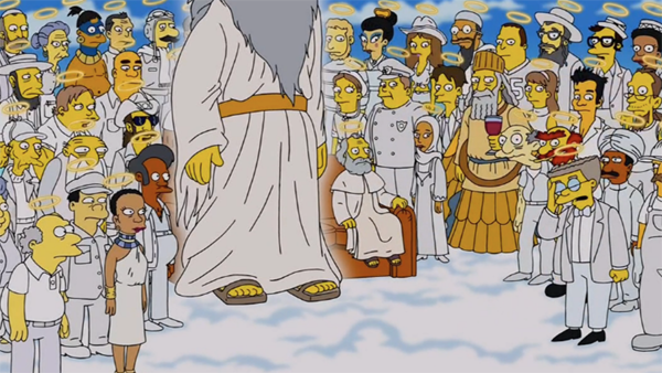 19. The Simpsons: “My Way or the Highway to Heaven” (season thirty, episode three, aired on 10/14/18) — Wow! For very first time since I started writing these lists a decade ago, The Simpsons makes an appearance! I started watching The Simpsons a few episodes into season one, and I watched it religiously through around season 15, but then I drifted away. I started watching again after The Simpsons Movie (which I loved) and watched for about half that season, but it didn’t hold my interest. I’ve dipped back in occasionally over the past decade, but it wasn’t until this past year that I watched several episodes in a row that made me happy. What I’ve seen of seasons 29 and 30 has been pretty good!! Not as good as seasons 3-6, but very entertaining and enjoyable. This episode was the best I’ve seen in a good, long while. God and St. Peter are chatting in heaven about how nobody good seems to be getting into heaven these days, which leads into a trilogy of stories that are all somewhat based around faith. We get the origin of Ned Flanders’ mustache (and his religious devotion) in a tale featuring young Ned as a heartless door-to-door salesman selling dangerous trampolines (“the vertebreaker”). In the second story, we see Marge’s atheist grandmother in WWII, married to a Nazi collaborator bar-owner (Moe). In the third story, we see a wealthy princess (Lisa) learn the path of the Buddha in this version of the Siddhartha legend. I love the concept behind this episode, and all three vignettes are a lot of fun. Great moments include: God and St. Peter wondering which of his wives Ned will spend eternity with; Lisa’s comment regarding her story being about “the one princess not affiliated with Disney — unless we are now owned by Disney” (with Disney’s purchase of Fox a near-certainty at this point), and this exchange between Chief Wiggum and Ralph that can stand with classic Simpsons quotes from years ago: when Ralph asks his dad if the people he shoots go to heaven, Wiggum replies: “they do if they didn’t do anything wrong, so a lot of them, yes.”