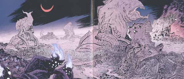 When I first read Makoma, it felt initially like an irrelevant side-story. But the ending of Makoma is intriguing, and something I have thought a lot about over the years. We see Makoma (who is drawn to look like Hellboy in this re-telling of the story) face a seven-headed dragon. He is able to defeat it, but at the cost of his own life and that of his friends. I wonder, was that seven-headed dragon supposed to actually BE the Ogdru-Jahad? (Was Makoma involved in originally imprisoning the Ogdru-Jahad? He wasn’t mentioned in The Island #2, but that doesn’t eliminate the possibility.) Or is this just intended to be a parallel story that hints at where Hellboy’s own story is heading? Makoma’s death feels like powerful foreshadowing of Hellboy’s eventual “death” at the end of The Fury. Does Makoma’s eating his own friends in order to gain the strength necessary for his final battle bode ill for H.B.’s former B.P.R.D. comrades? I suppose we’ll see some-time down the road…